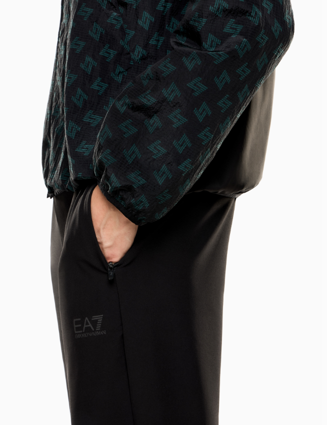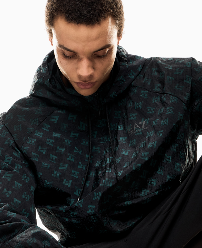 Tuta dai volumi confortevoli e caratterizzata dalla stampa di collezione, composta da una felpa con zip e pantaloni jogger. Il modello è realizzato nell'innovativo tessuto VENTUS7: una speciale tecnologia pensata per garantire un'ottima regolazione del calore corporeo e, grazie al taglio ergonomico, per massimizzare la libertà di movimento. Vestibilità regolare. Brand Ea7