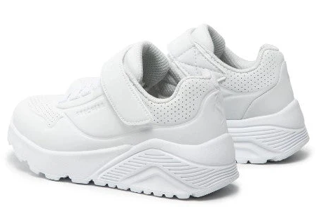 Tomaia in pelle bianca con scritta laterale skechers e logo sul retro. Suola in gomma. Soletta interna in memory foam. Chiusura con laccio elastico e strappo. Calzata regolare. Brand Skechers